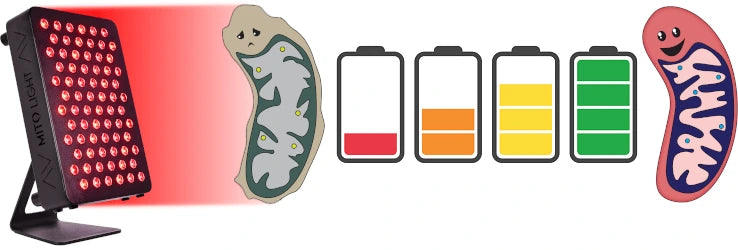 Uzrok tome je dušikov oksid (NO), koji se veže za enzim sitokrom c oksidazau. NO tada sprječava stanično disanje, proces koji proizvodi energiju. Crveno svjetlo razdvaja te molekule, omogućujući sitokromu c oksidazau da nastavi s radom.